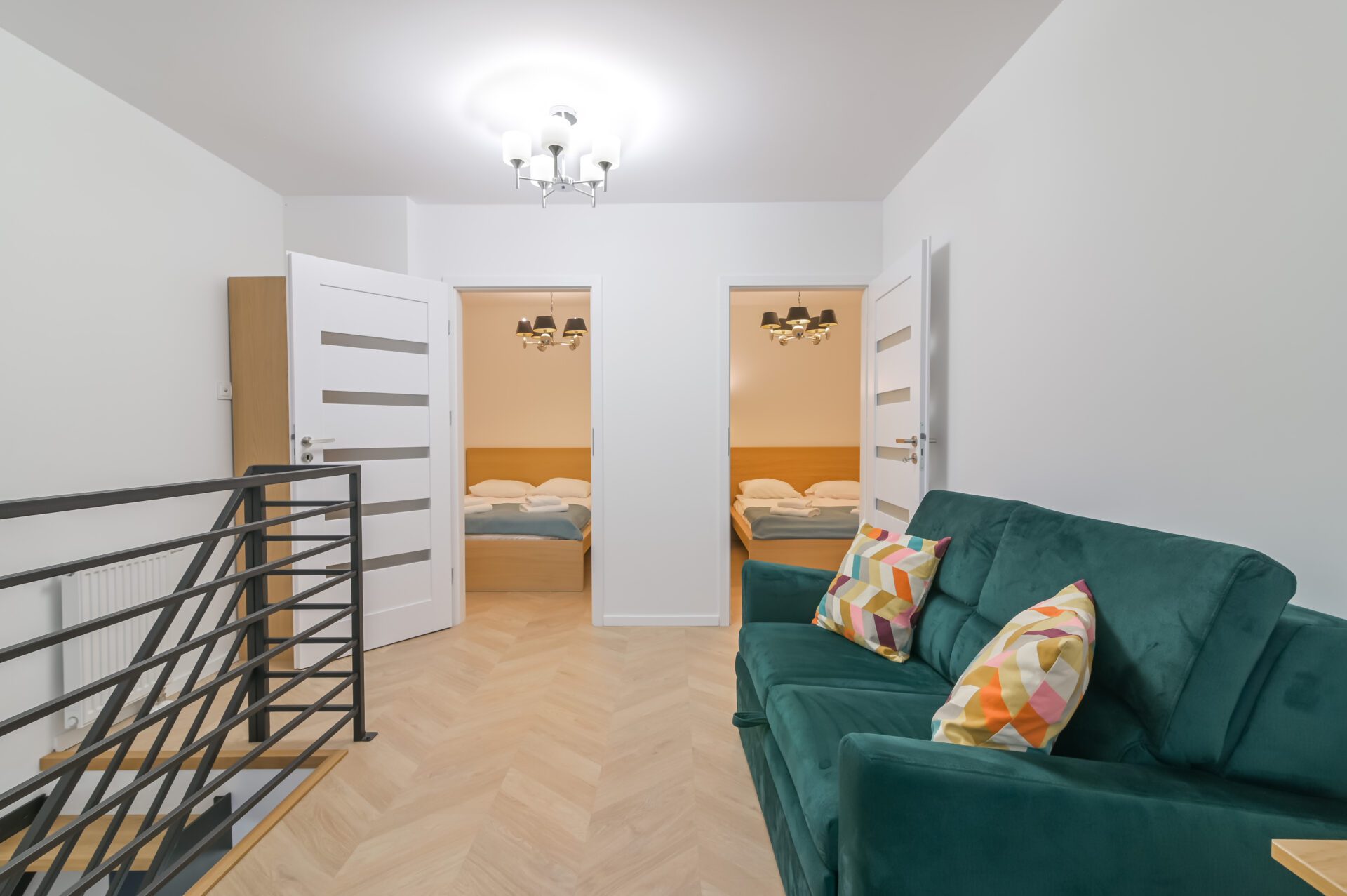 To wyjątkowe, dwupoziomowe mieszkanie położone w prestiżowej lokalizacji przy ulicy Żeromskiego 7 w Gdyni. Apartament znajduje się w nowoczesnym budynku inspirowanym gdyńskim modernizmem, zaledwie kilka minut spacerem od morza, Bulwaru Nadmorskiego i Skweru Kościuszki. Mieszkanie składa się z dwóch oddzielnych, zamykanych sypialni, salonu z aneksem kuchennym oraz łazienki z prysznicem typu walk-in. W salonie znajduje się rozkładana sofa, która zapewnia dodatkowe miejsce do spania, a nad nim mieści się antresola z drugą rozkładaną sofą – idealna jako strefa relaksu, domowe biuro lub dodatkowa sypialnia. Kuchnia jest w pełni wyposażona, a całość została urządzona w lekkim, skandynawskim stylu z nadmorskimi akcentami nawiązującymi do charakteru Gdyni. Mieszkanie jest jasne i funkcjonalne, z dużymi przeszkleniami i wysokim standardem wykończenia. Budynek, w którym się znajduje, oferuje także windę, monitoring oraz możliwość korzystania z podziemnego parkingu. To idealne miejsce dla osób szukających komfortowego mieszkania w sercu miasta, blisko morza, z dostępem do kultury, gastronomii i codziennych udogodnień.