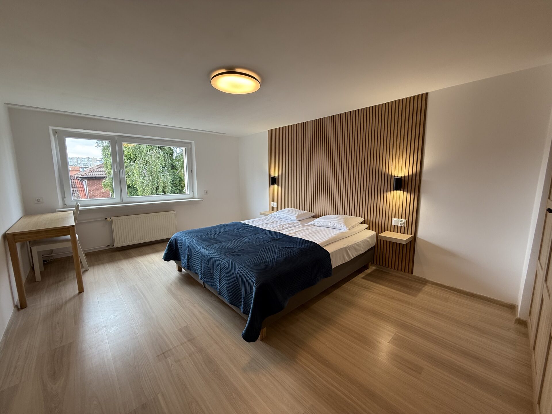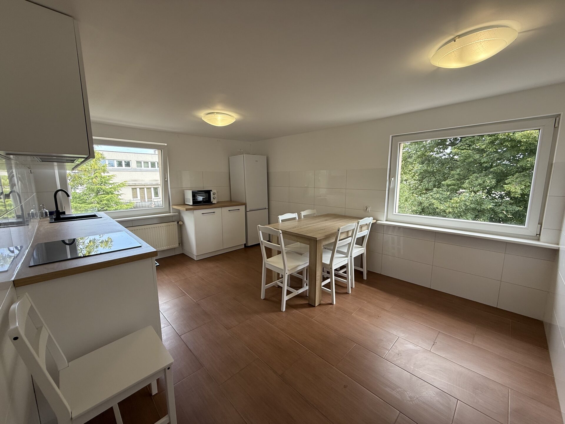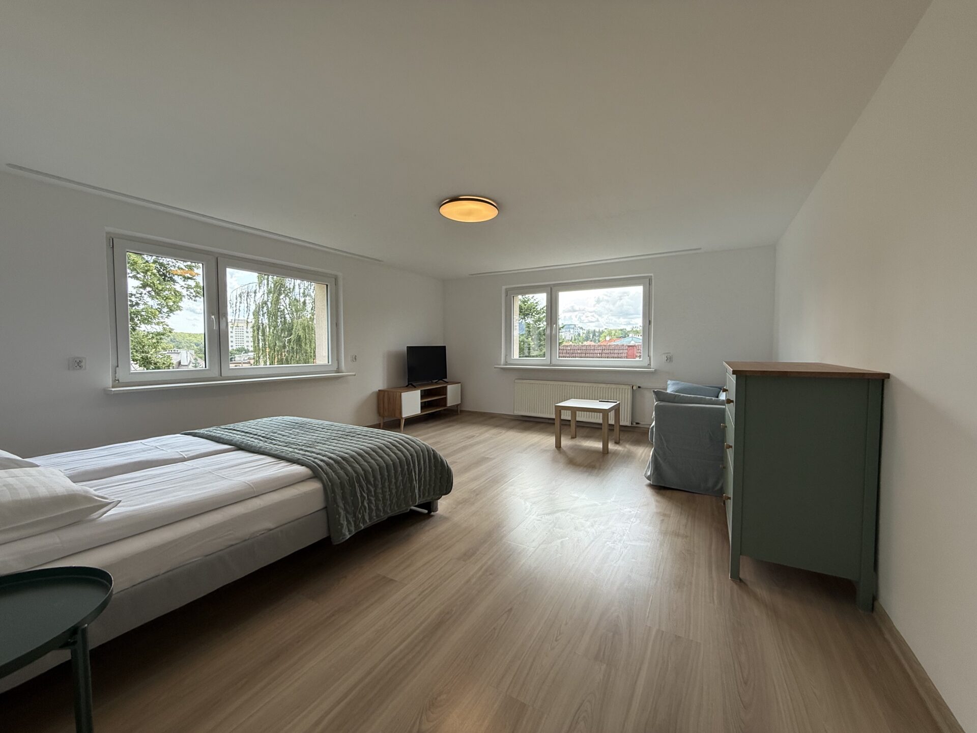 Apartament przeznaczony jest dla sześciu osób i oferuje wygodną, funkcjonalną przestrzeń urządzoną w jasnych, nadmorskich barwach. Składa się z dwóch przytulnych sypialni, w których znajdują się dwa łóżka małżeńskie oraz rozkładana sofa dla dwóch osób. W apartamencie znajduje się również w pełni wyposażona kuchnia, umożliwiająca samodzielne przygotowywanie posiłków, oraz przestronna łazienka z prysznicem. Duże okna zapewniają naturalne światło i widok na okoliczną zieleń, tworząc przyjemną, relaksującą atmosferę.